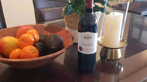 Complimentary bottle of wine and fruit basket.